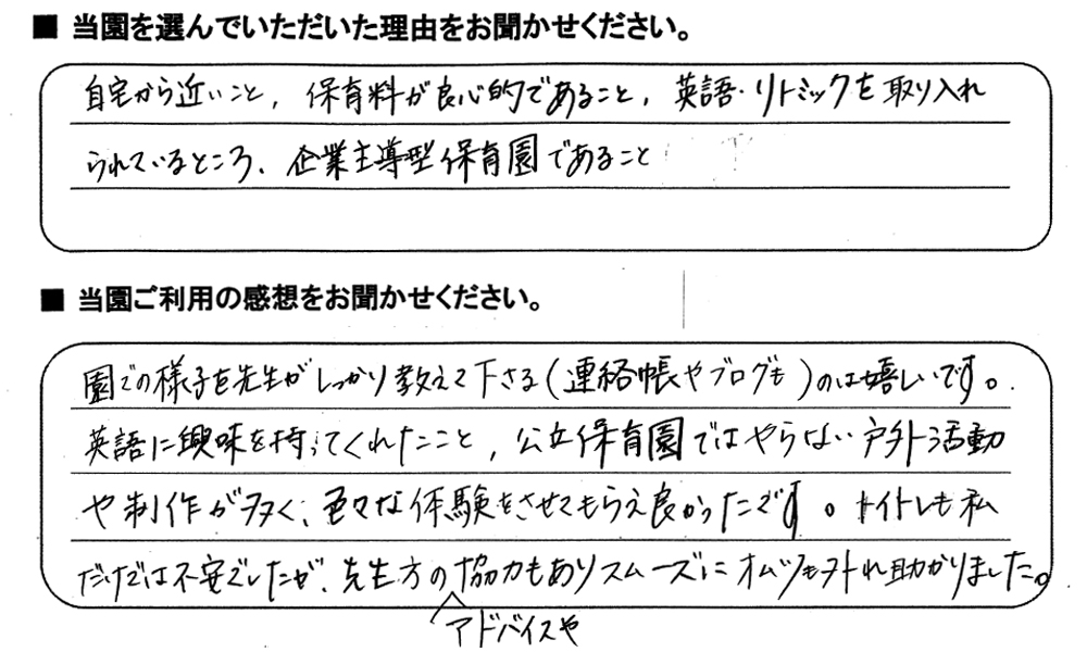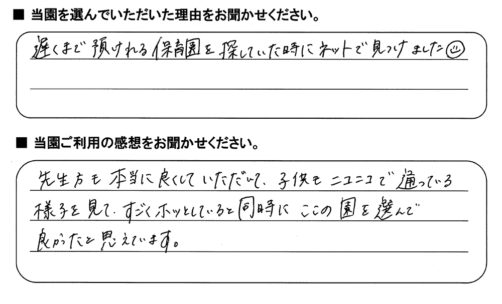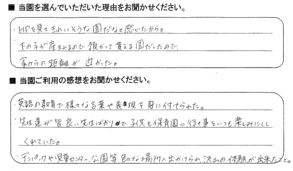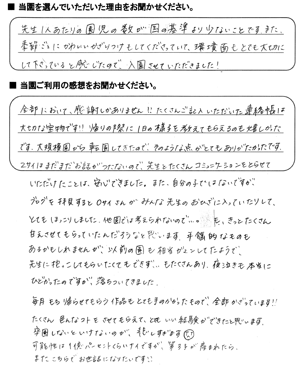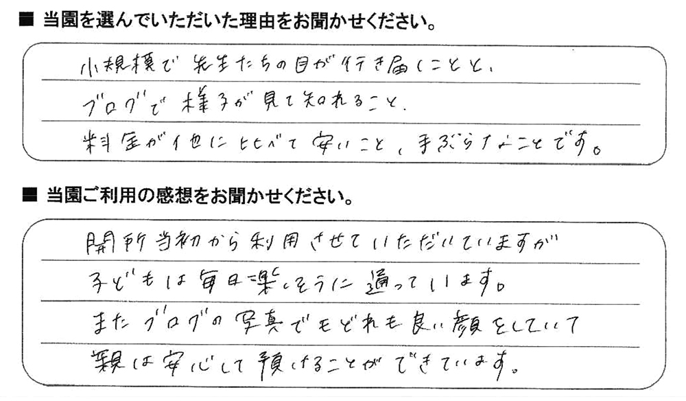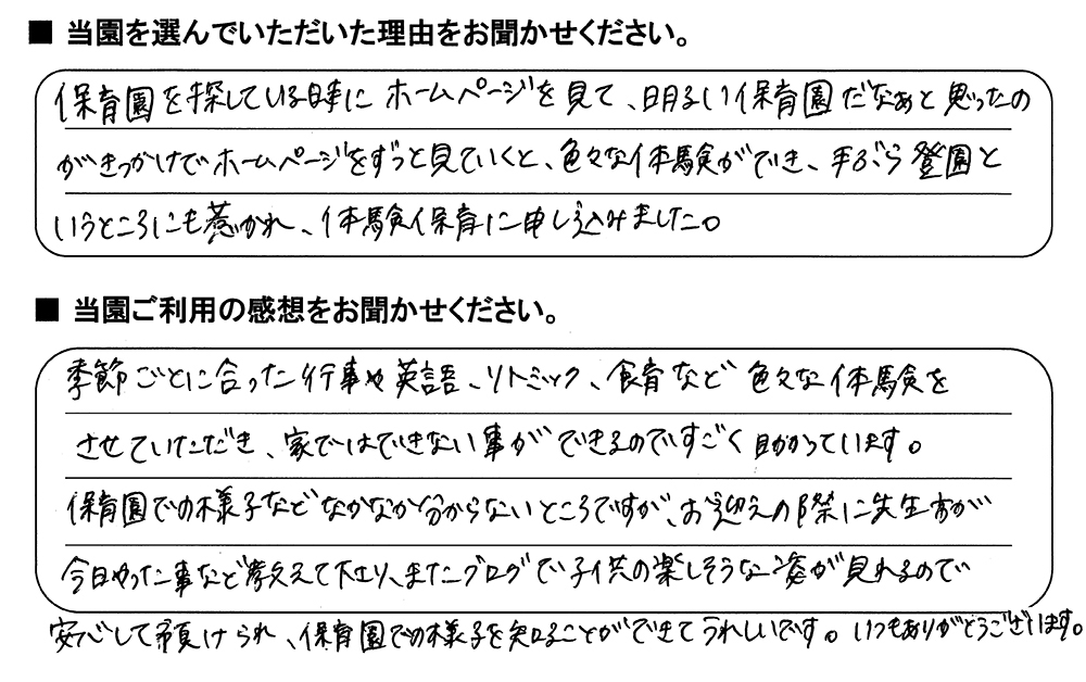 みらいここ保育園を利用された皆さまからの