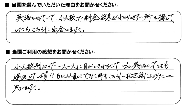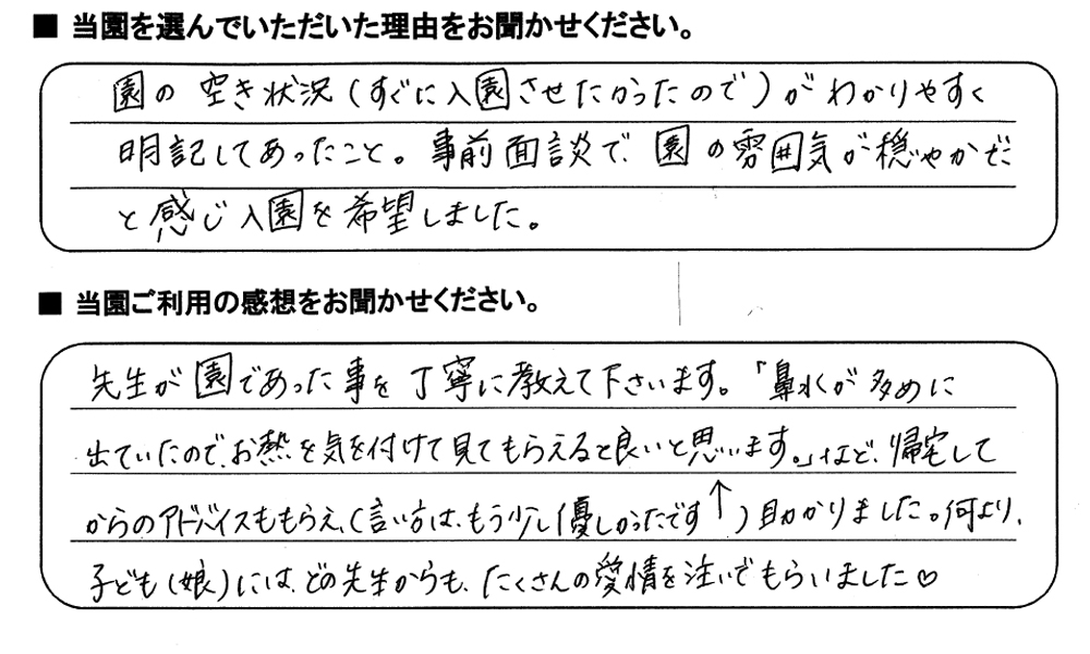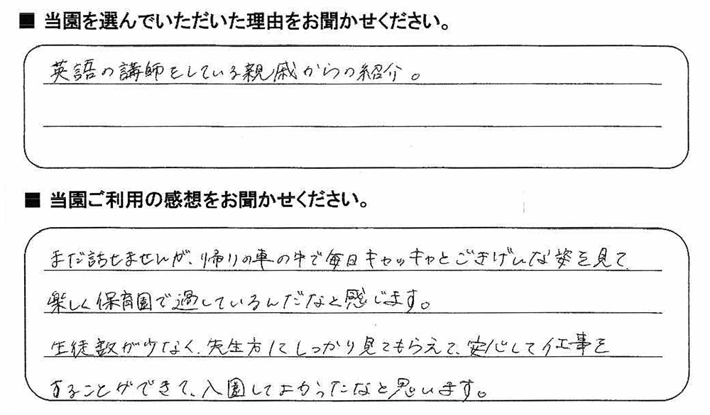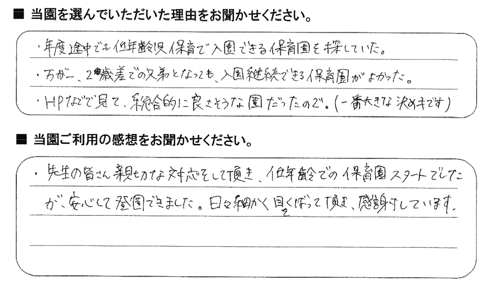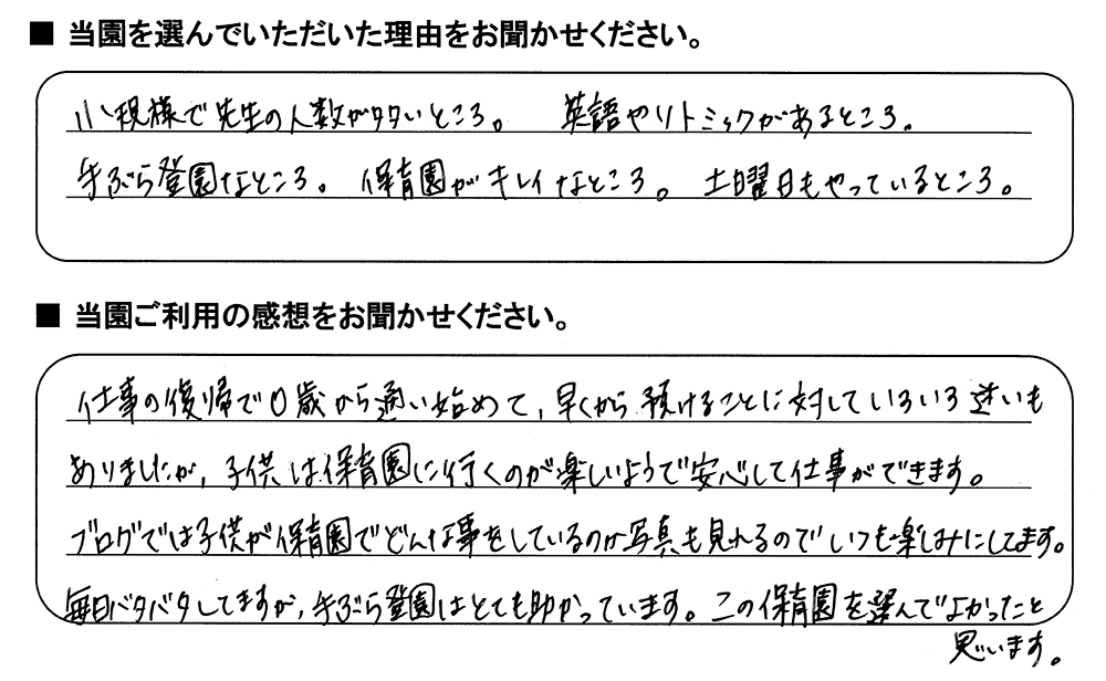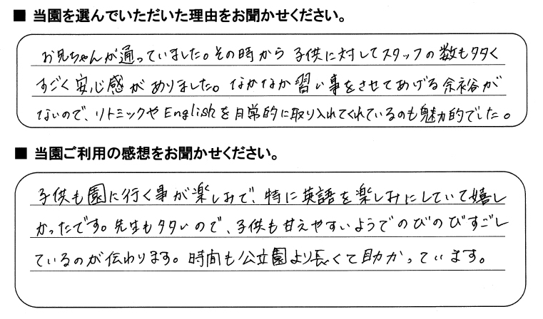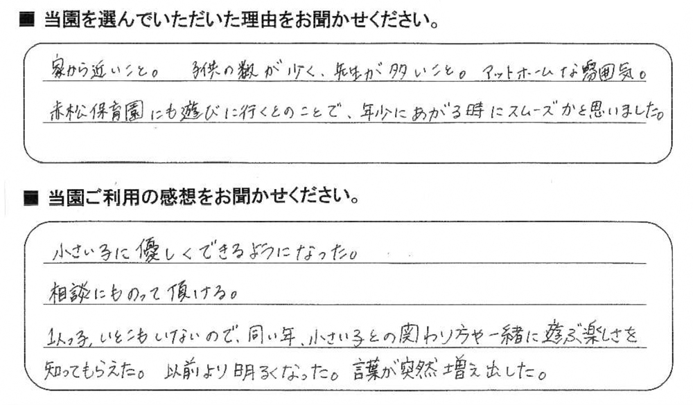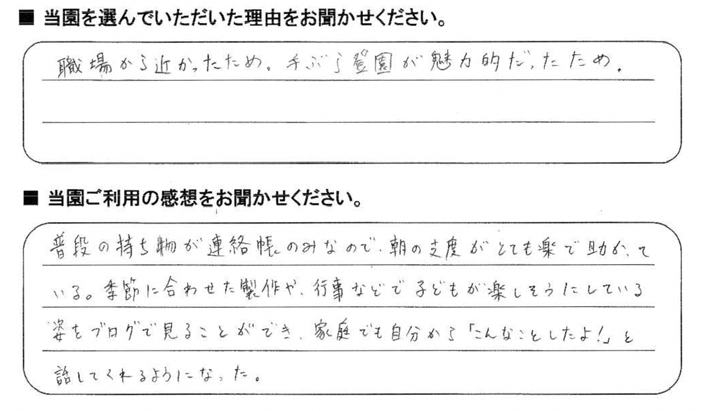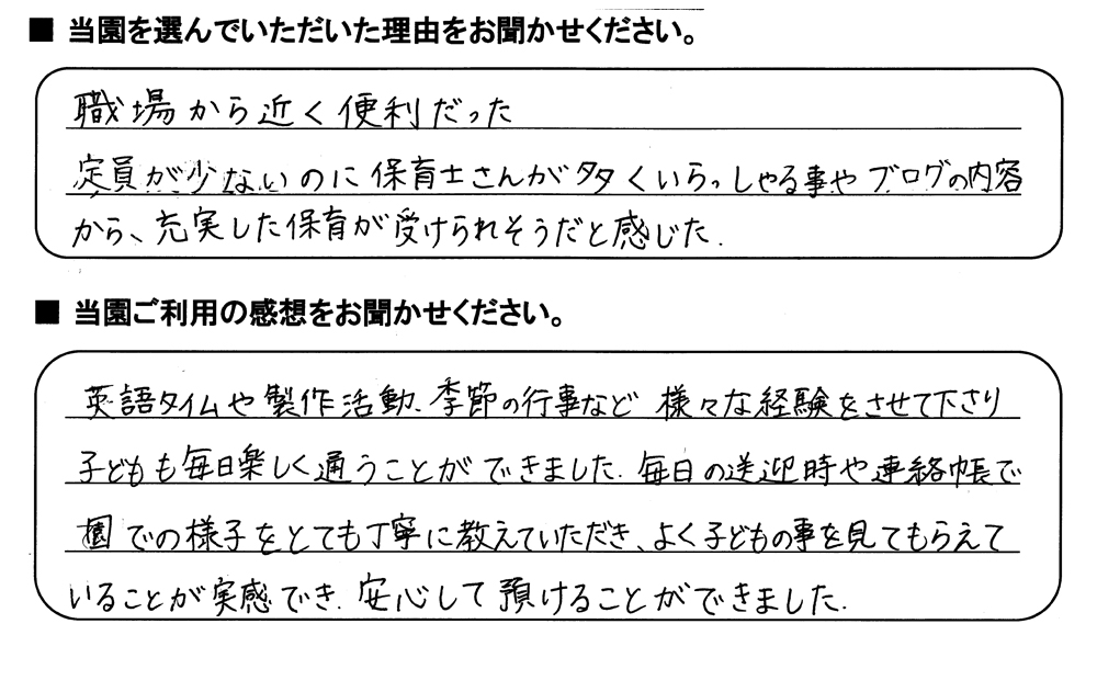 みらいここ保育園を利用された皆さまからの
